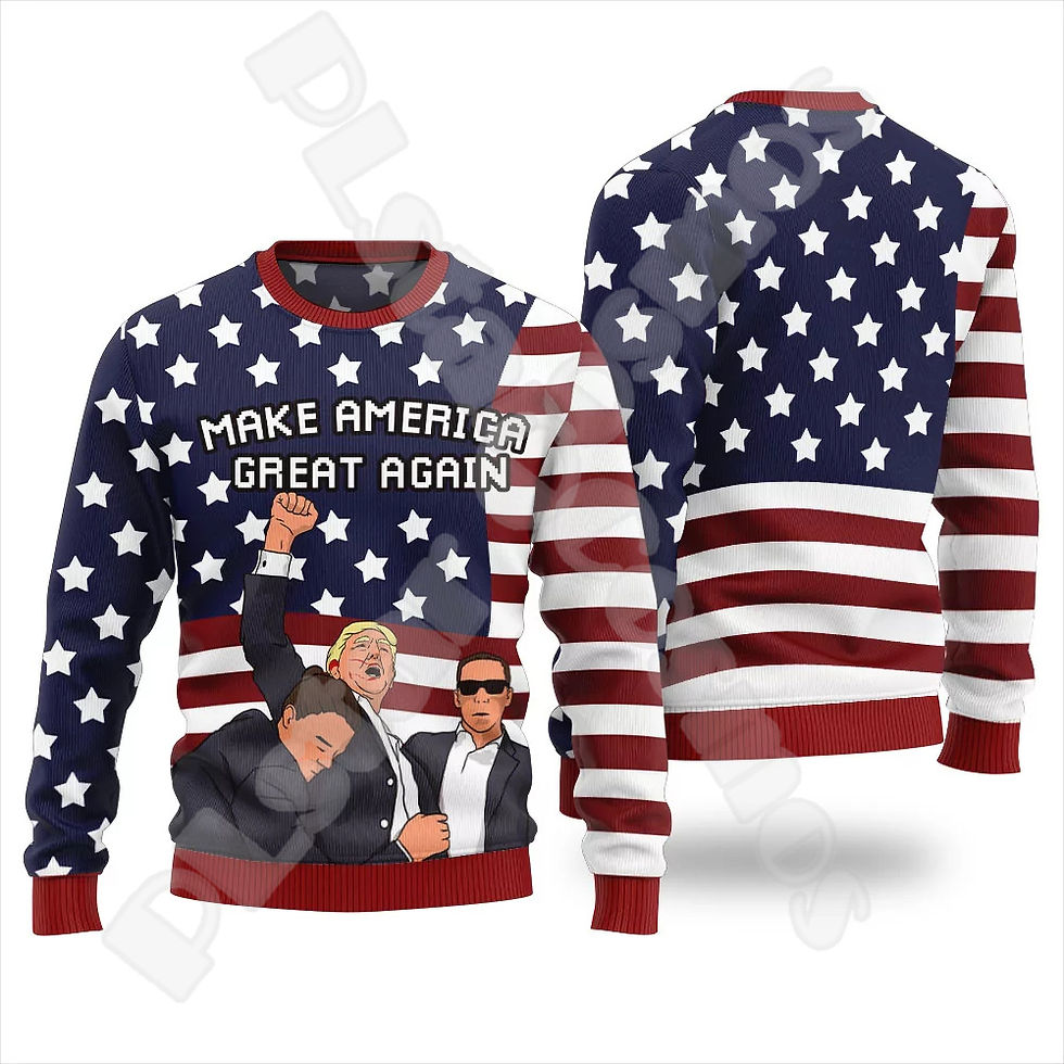 Make Christmas Great Again Funny Trump Xmas Snow Pajama Ugly T-Shirt, 100% Cotto