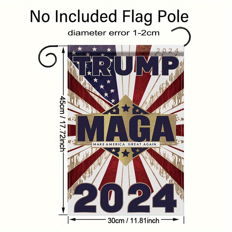 SPECIFICATIONS Item ID: TL83078 Material: Polyester 1pc, Garden Welcome Flag, TRUMP MAGA 2024 Double Sided Printed Yard Flag, VerticSKU: 16110462$15.00PriceQuantity1pcQuantity*Add to Cart