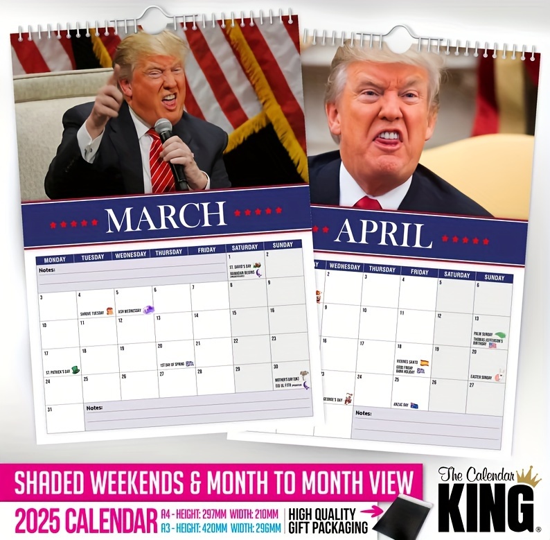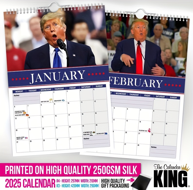 SPECIFICATIONSItem ID: VC484690Major Material: Paper2025 'Make America Great Again' Trump-Inspired Wall Calendar with Notepad - VibrSKU: 21142 $20.00 Regular Price$17.00Sale PriceColor1pcQuantity*Add to Cart