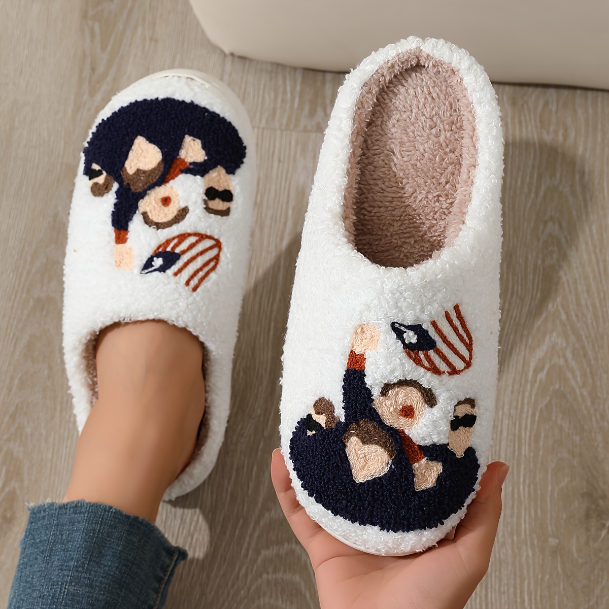 Festive Trump-themed Slippers: Soft and Warm Winter Indoor Slipper for Couples -