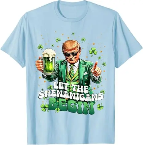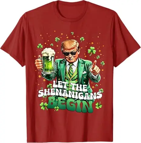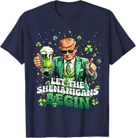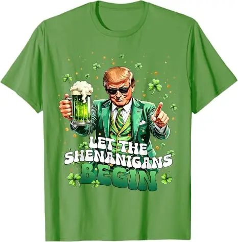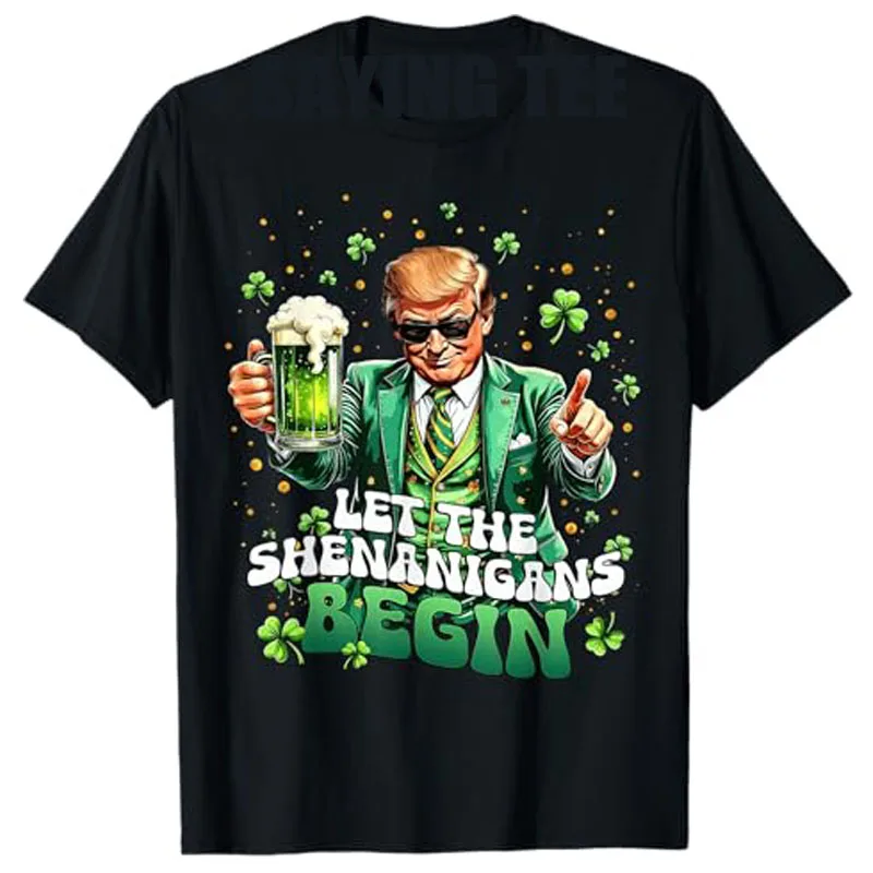 Let The Shenanigans Begin Funny MAGA St Patrick's Day T-Shirt Irish US Flag Lepr